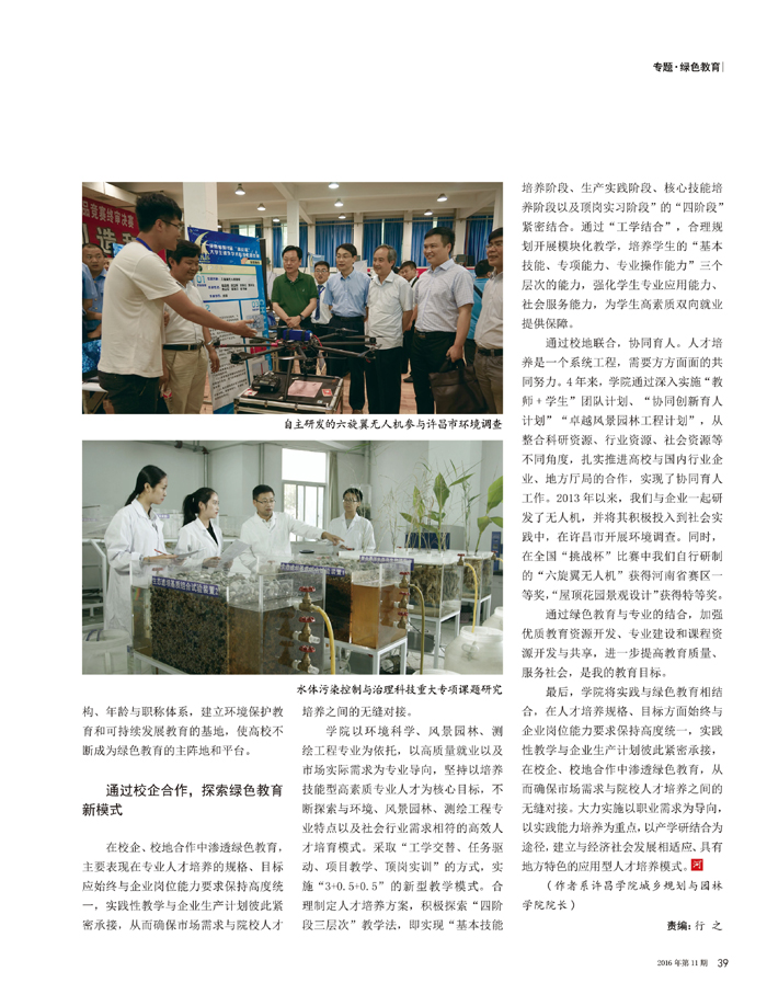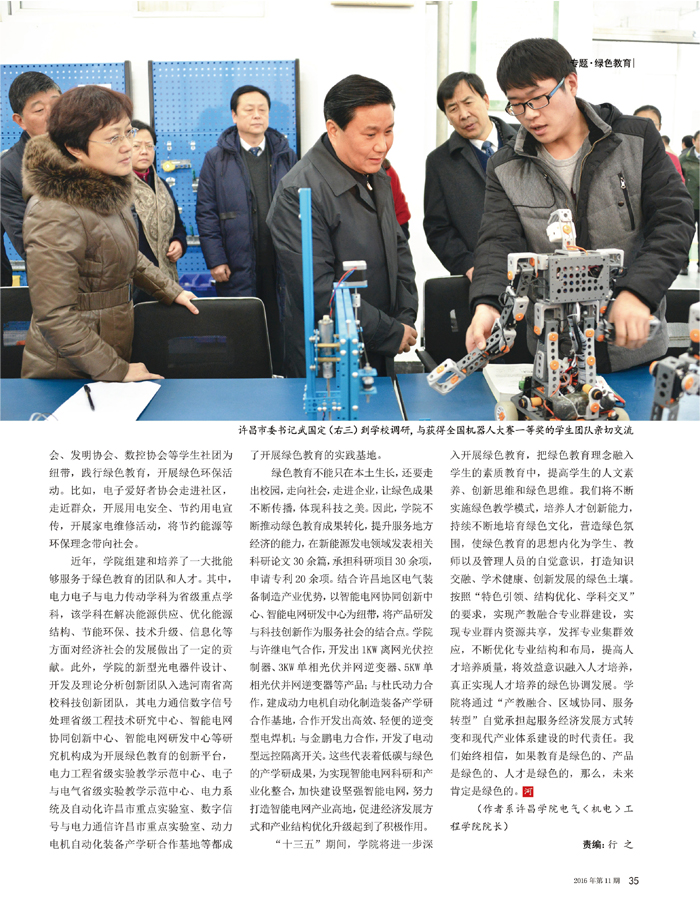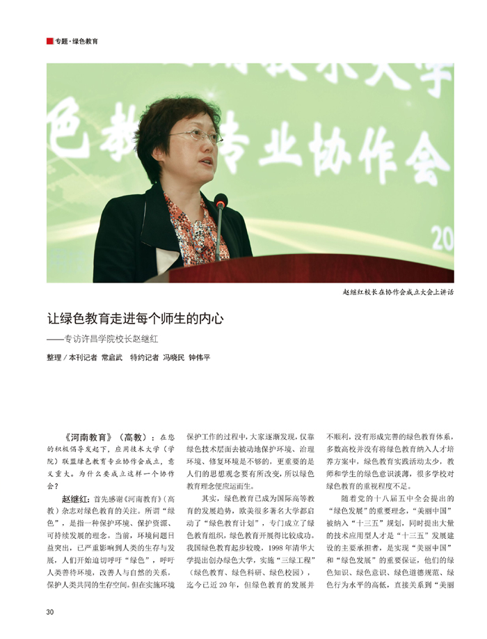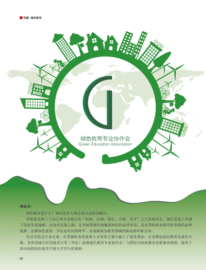 专题覆盖14个页码共计两万余字,内容包括应用技术大学(学院)联盟绿色教育专业协作会全景式综述、让绿色教育走进每个师生的内心——赵继红院长专访,还分别对bet36体育在线电气(机电)工程学院、新材料能源学院、城乡规划与园林学院、食品与生物工程学院的绿色教育特色工作进行了报道。