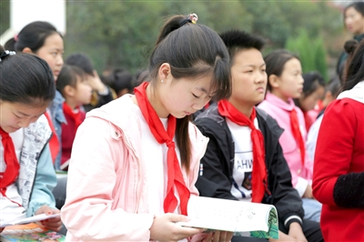 郭村小学学生阅读获赠的图书