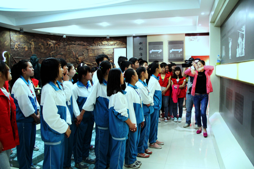 图为博物馆讲解员为41名聋哑儿童讲解农耕文化