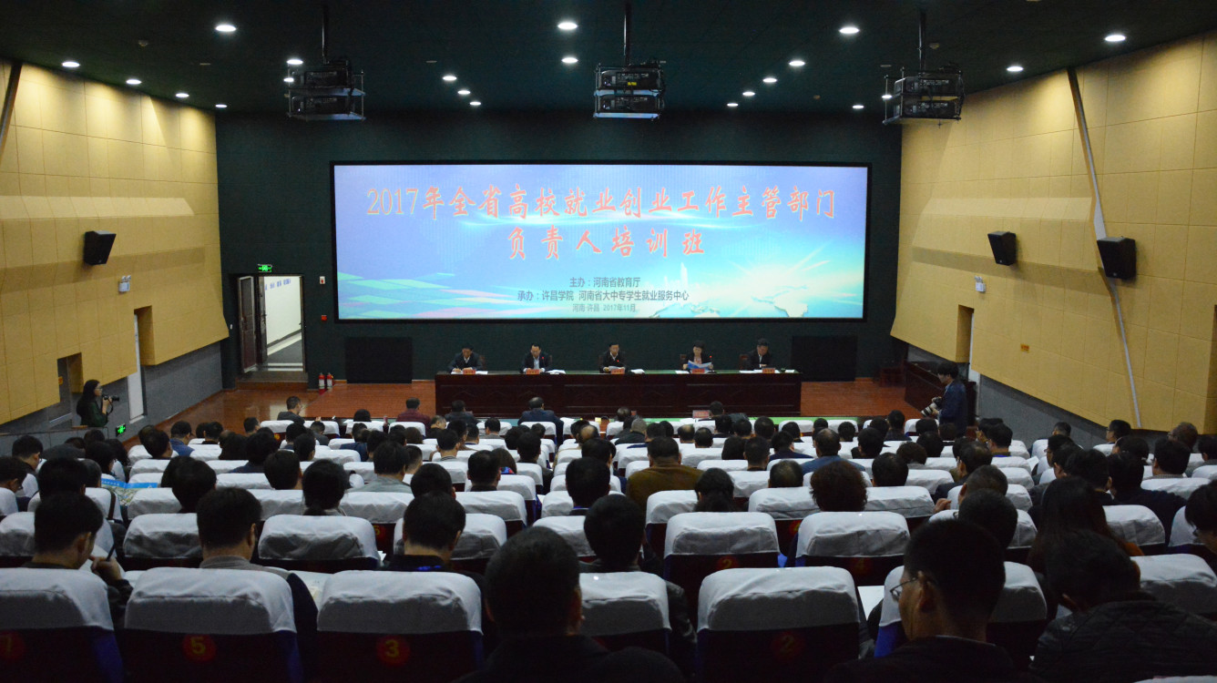 11月8日,由河南省教育厅主办,bet36体育在线、河南省大中专学生就业服务中心承办的2017年全省高校就业创业工作主管部门负责人培训班在bet36体育在线双创信息中心圆满落幕。省教育厅高校工委专职委员高治军、省教育厅学生处处长王继东、省人社厅就业促进工作办公室副主任崔建军、省教育厅学生处调研员杨占军、省教育厅学生处调研员吴建中、省教育厅学生处副处长李玉伟、省大中专毕业生就业中心主任于华龙、bet36体育在线院长赵继红、副院长郭涛等出席培训班,全省136所高校近170名就业创业工作主管部门负责人参加了此次培训。