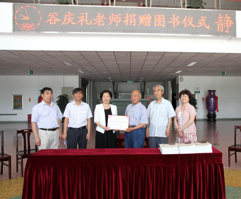 6月16日上午,谷庆礼老师捐赠图书仪式在图书馆二楼大厅举行。仪式上,中国书法家协会会员谷庆礼老师向bet36体育在线图书馆捐赠了自己的书法作品集《庆礼写老子》。副院长黄怡俐出席仪式,许昌老年书画研究会、bet36体育在线离退休工作处和图书馆相关负责人参加了捐赠仪式。