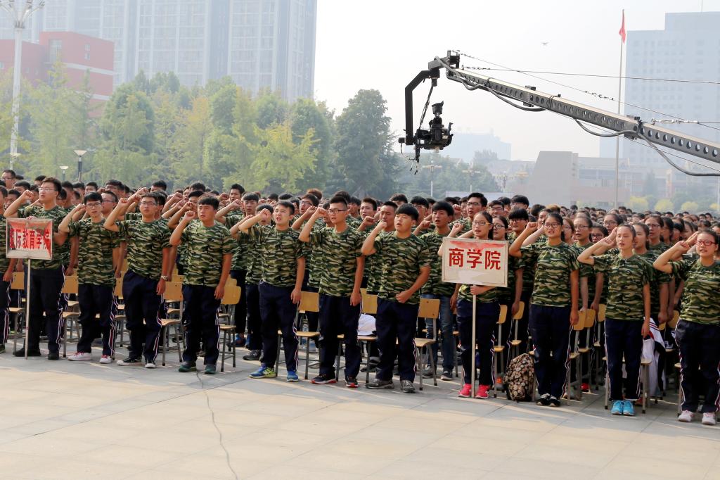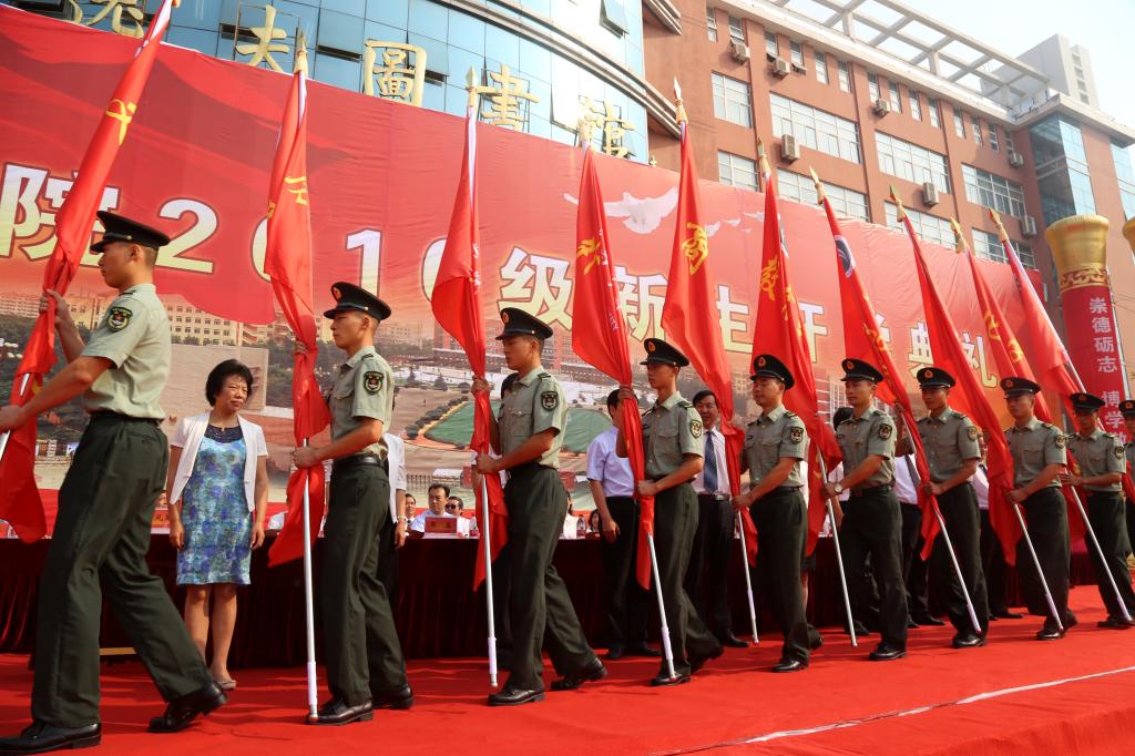 仪式上,校领导向新生军训连队授旗。2016级全体新生军训团员郑重宣誓:不忘初心,牢记使命,勤学苦练,强健体魄;崇德砺志,博学敬业,立志成才,报效祖国。