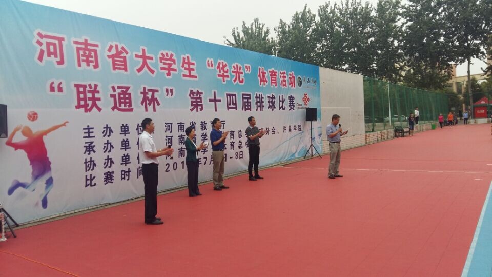 7月4日,河南省大学生“华光”体育活动第十四届排球比赛在bet36体育在线开幕,本次比赛由河南省教育厅主办,河南省学生体育总会排球协会、许昌学院承办,河南省学生体育总会协办。河南省教育厅体卫艺处副调研员高翔,bet36体育在线副院长黄怡俐,本届赛事裁判长、河南大学体育学院副院长李鹏等领导出席开幕式。开幕式由bet36体育在线体育学院院长李慧林主持。