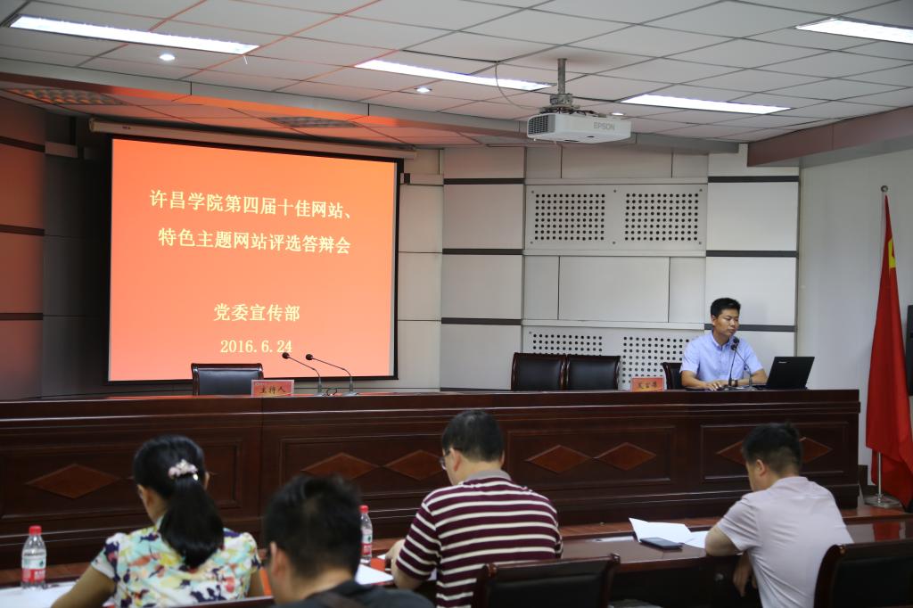 6月24日下午,bet36体育在线第四届十佳网站、特色主题网站评选答辩会在办公楼第三会议室举行。党委宣传部、信息化管理中心等有关单位负责人担当评委。19个候选网站负责人及部分单位网络信息员参加了评选答辩会。