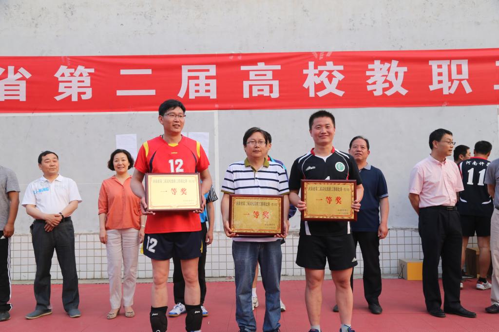 经过两个比赛日的激烈争夺,5月1日下午,由河南省教育厅主办,河南省学生体育总会排球协会、bet36体育在线承办的河南省第二届高校教职工排球比赛在bet36体育在线圆满结束。闭幕式上,华北水利水电学院副院长王天泽、bet36体育在线副院长郑直、黄怡俐等为获奖代表队颁发了奖杯和奖品。