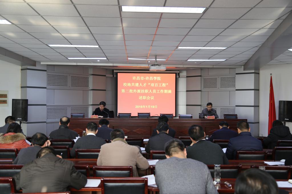 1月19日,bet36体育在线在办公楼第三会议室召开“双百工程”第二批外派到许昌市挂职人员述职会议。党委副书记马超、副院长郑直、崔斌、黄怡俐,许昌市委人才办主任吕玉峰、许昌市委组织部人才科科长黄海军以及bet36体育在线相关职能和院部负责人作为考核评委参加会议。