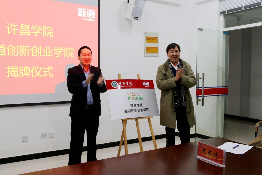 12月9日上午,bet36体育在线·新道创新创业学院揭牌仪式在bet36体育在线大学生创新创业中心举行。副院长黄怡俐、新道科技股份有限公司区域总经理赵志刚、新道河南分公司总经理张林峰等出席仪式,bet36体育在线党办、教务处、科技处、学生处、校地合作办公室、团委、后勤管理服务中心、创新创业学院负责人和大学生创业团队代表40余人参加了揭牌活动,仪式由创新创业学院院长陈彪主持。