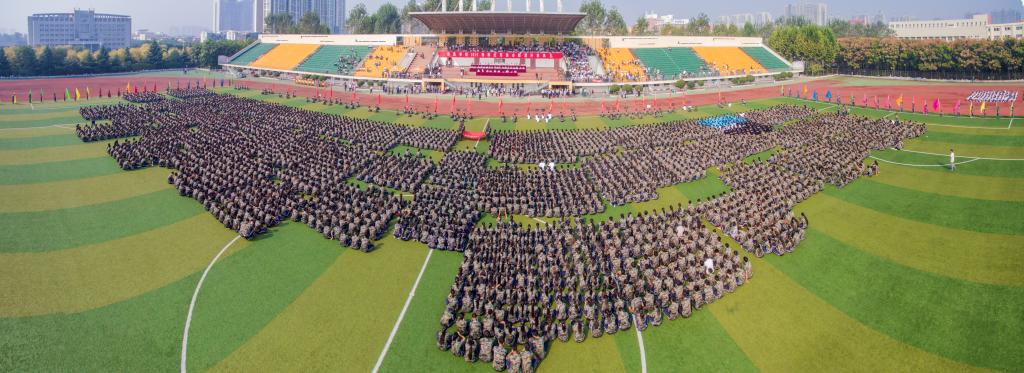 9月25日上午,bet36体育在线在羽飞田径场隆重举行bet36体育在线2015级新生军训会操暨开学典礼。校领导赵继红、马超、张建军、崔斌、黄怡俐、郭涛、罗凤英、杜志傲,中国人民解放军某部营长张鹏等出席仪式。学校各院(部)、各机关部门负责人在主席台就座。全校各院(部)主管学生工作的领导、2015级的辅导员、班主任、校友代表和全体新生6000多人参加会操活动。仪式由院长办公室主任陈遂德主持。