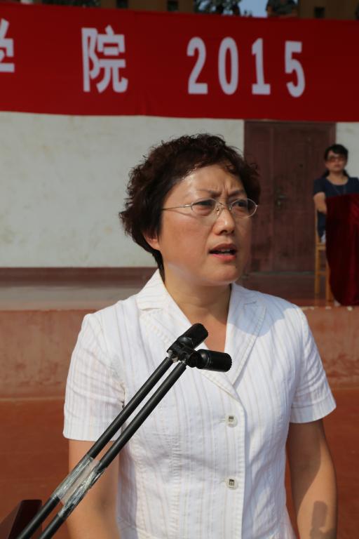 院长赵继红教授在开学典礼上发表了热情洋溢的讲话。她代表学校,向取得可喜军训成果的2015级新同学表示最热烈祝贺和欢迎!赵院长说,我们国家刚刚举办了隆重的中国人民抗日战争暨世界反法西斯战争胜利70周年阅兵仪式,让我们回溯了中华民族浴火重生的艰难历程,也感受到祖国的繁荣与强大,希望同学们心怀祖国,努力成材,秉承军训的坚强意志,以严格的纪律,饱满的精神,健康的体魄投入到大学生活的全新篇章。