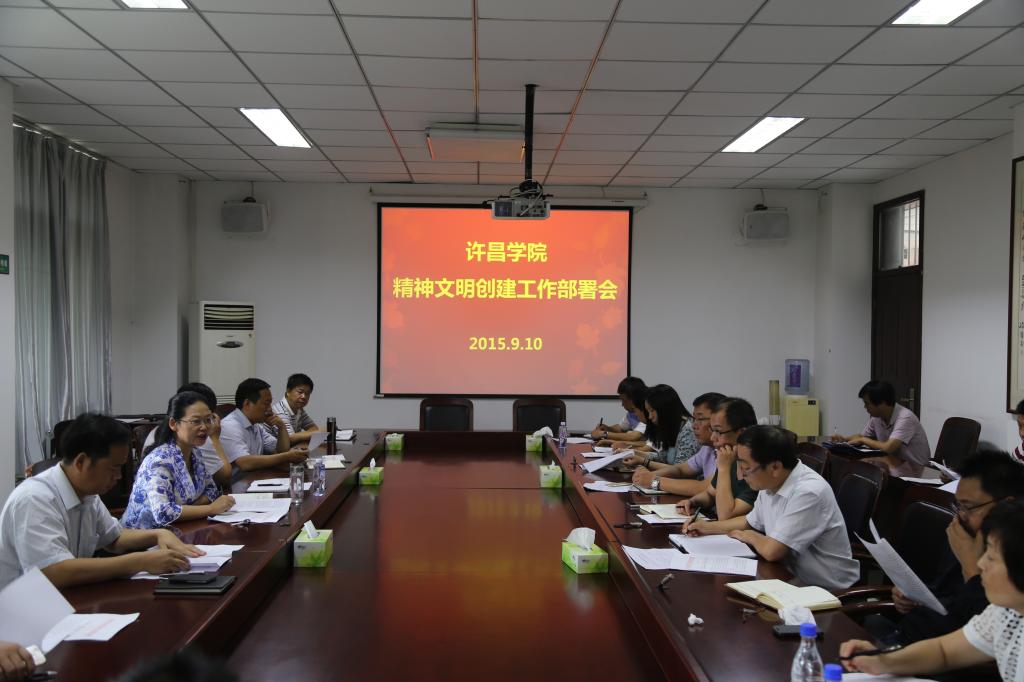 9月10日,bet36体育在线精神文明创建工作部署会在办公楼第一会议室召开,安排部署近期精神文明创建、省级文明单位复查、“诚信校园,善孝师生”教育实践活动等工作。党委宣传部部长、校文明办主任潘春彩,全校各教学单位具体负责文明创建工作的班子成员、相关职能部门负责同志参加会议。