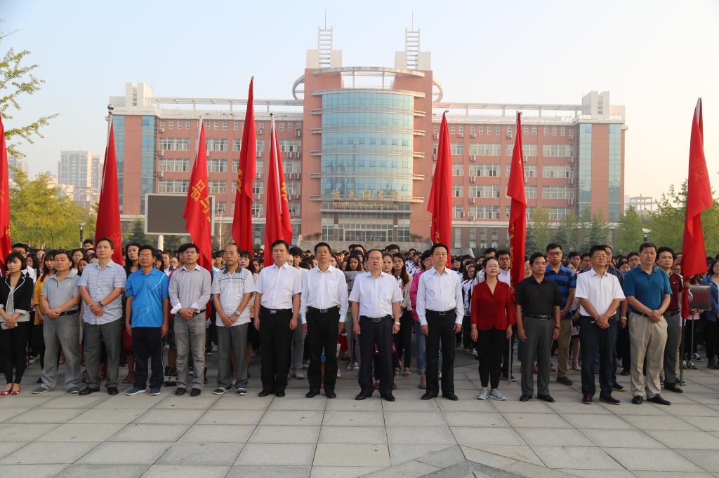 今天(9月7日)是新学期的开学第一天,早上6点40分,bet36体育在线在弘毅广场庄严举行纪念抗日战争暨世界反法西斯战争胜利70周年主题升旗仪式。校党委副书记马超、副院长郭涛出席仪式。校党委宣传部部长潘春彩、学生工作部部长陈彪、团委书记张鹏辉和各教学院部党总支书记、副书记,团总支书记、副书记,辅导员及学生代表等1500余人参加了庄严升旗仪式。仪式由陈彪处长主持。