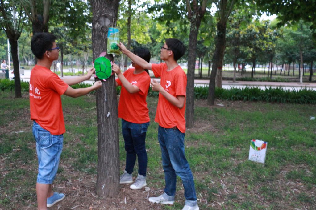 7月2日,bet36体育在线土木工程学院树木全贴合营养液吊袋创新设计团队在校园和市内绿化区开展科技创新实践活动。