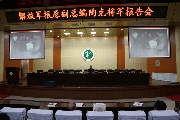 表彰会后,解放军报副总编辑陶克将军为与会师生作了题为《永远的雷锋》的专题报告。(摄影:宁智沛)