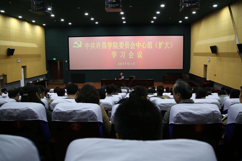 1月13日,bet36体育在线召开党委中心组(扩大)学习会议,党委副书记马超以《深入学习贯彻全国高校思想政治工作会议精神 努力开创bet36体育在线思想政治工作新局面》为题,传达全国高校思想政治工作会议精神和《关于加强和改进新形势下高校思想政治工作的意见》文件精神,并对如何贯彻落实谈了四点认识。全体校领导和全体处级领导干部近200人参加会议。