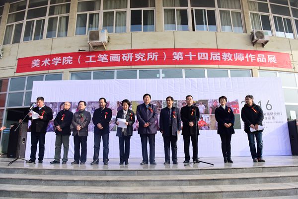 12月16日上午,bet36体育在线美术学院(工笔画研究所)第十四届教师作品展在艺术楼前开幕。bet36体育在线副院长黄怡俐,河南省美术家协会副主席连俊洲,中央数字电视书画频道河南新闻中心主任苏勇军,原许昌市委宣传部副部长、三国文化研究院常务副院长卢新运出席开幕式,bet36体育在线党委宣传部、学生处、教务处、科技处等相关部门负责人以及美术学院部分师生参加了开幕式。开幕式由美术学院党总支书记马忠主持。