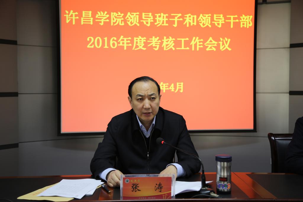 会上,省委第六考核组组长、河南省教育厅副巡视员张涛作重要讲话。就做好考核工作,提出了明确要求:一要统一思想认识。开展年度考核工作是贯彻落实党的十八大、十八届三中、四中、五中、六中全会精神和习近平总书记系列重要讲话精神,推进“四个全面战略”部署,适应从严治党、从严管理干部新形势,加强领导班子和干部队伍建设的重要举措。做好年度考核有利于落实从严治党和依法治国的要求,促使领导班子和领导干部从严律己、依法治校、勤政廉政,增强领导班子的凝聚力和战斗力,有利于激励和引导领导班子和领导干部树立科学发展观和正确政绩观,有利于充分发挥考核传递压力、提供动力、激发活力的要求,把全面从严管理干部的要求落到实处;二要明确任务要求。本次考核突出了“考班子、评干部”的核心要求,主要包括领导班子和省管干部年度考核、工作实绩考核、党风廉政建设责任制及落实主体责任考核评价、第三方民意调查、干部选拔任用工作“一报告两评议”等五个方面的内容;三要认真履行责任。要高度重视、正确对待,实事求是、客观公正,顾全大局、严守纪律。要通过本次年度考核工作,考核出团结、考核出正气、考核出信心、考核出境界,以良好的状态和优异的成绩迎接党的十九大胜利召开。