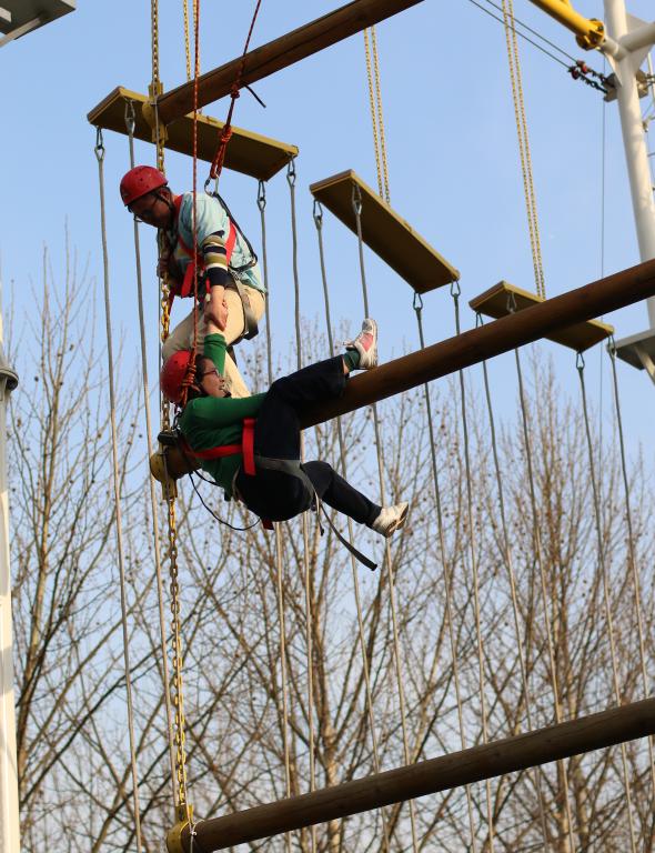 在两天的时间里,户外运动教研团队的老师们为学员开展了浣熊圈、神笔马良、极速60秒、生日排序、穿越电网、信任背摔、挑战150等中低空项目及空中抓杠、巨人梯两项高空项目的素拓活动。