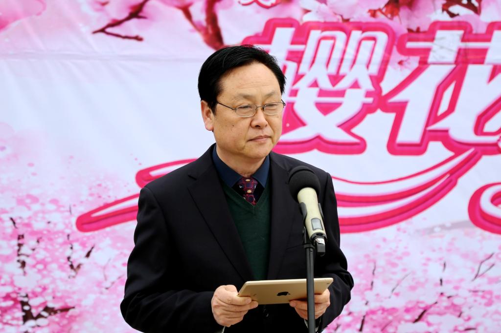 院长赵继红宣布bet36体育在线首届樱花文化节开幕。