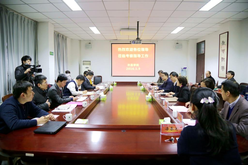 校领导指出,多年来,学校坚持“地方性、应用型、服务性、国际化”的办学定位,坚定不移地走融入地方办学、服务地方建设的发展道路,推进学科专业调整、师资队伍优化和人才培养模式改革,大力开展国际交流与合作,学校办学水平明显提高,办学特色逐步凸显。近一年来,学校入选河南省转型发展示范校建设项目并顺利通过考核验收,又入选了河南省首批示范性应用型本科院校建设项目;学校更名工作有序进行;学校协同创新工作稳步向前发展,已和地方企业共同建设了9个协同创新中心,提升了学校服务区域经济和地方经济的能力,引领地方产业转型升级;校地人才共建“双百工程”深入实施,第三批人员正在遴选;学科专业调整进一步优化,目前理工专业已经占到全校本科专业的一半,理工专业学生也占到在校生总人数的一半,实现了“双过半”;学校进一步加大人才引进的力度,实现了市政府和学校引进人才政策的叠加效应;筹划先进装备制造研发平台建设,计划2016年建设科技研发中心;依托bet36体育在线建设的许昌大学科技园被评为河南省首批大学科技园区,大学科技园将在学校引进人才和产业孵化等方面发挥更大功用。