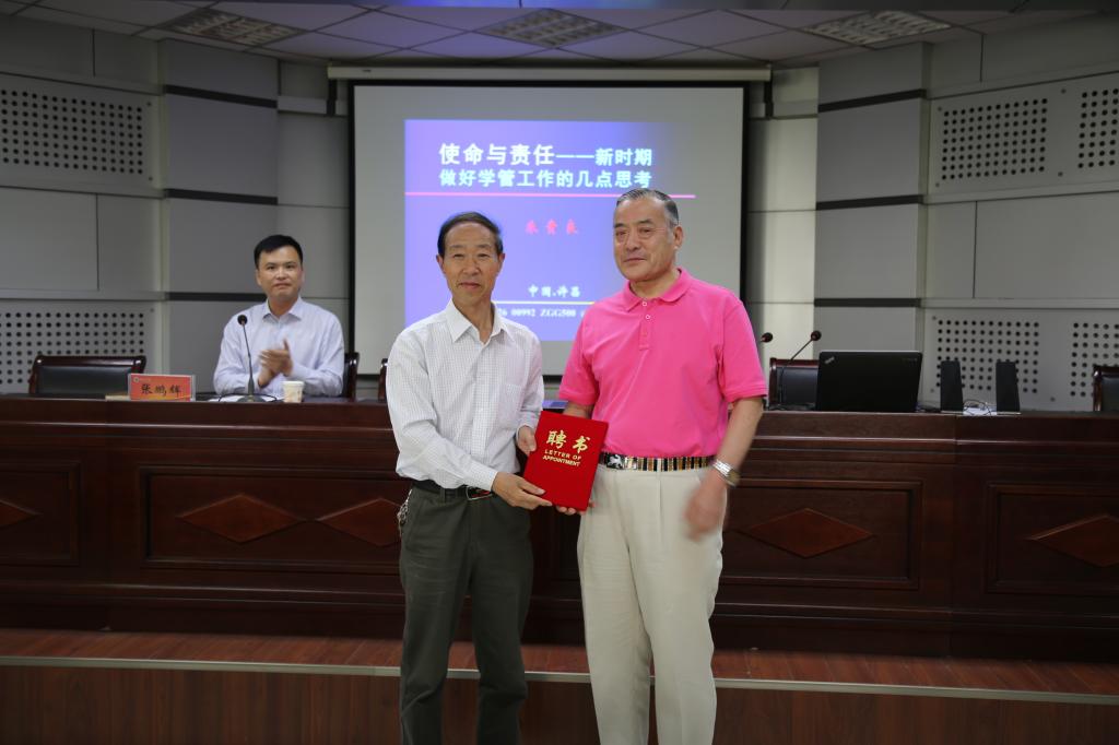 报告会前,学校关心下一代工作委员会副主任汪庆华教授向朱贵良教授颁发了bet36体育在线大学生德育宣讲团团员聘书。报告会上,朱贵良教授从目前大学校园存在一些现实问题入手,提出学生管理工作的四步曲——认识学生、了解学生、发现问题、解决问题,并指出在学生管理工作方面要特别注意两个重要节点(大一至大二的前三个学期节点和大二的第二学期之后到毕业之前节点)和三项教育(大学是什么教育、摆脱高中阶段应试阴影教育和理想信念教育)。针对新时期的学生工作管理者,朱贵良教授提出了四点新的思考:一是互联网环境下学生管理工作面临新课题;二是怎样处理邪教组织传播的问题;三是面对目前互联网上的色情泛滥,学生管理工作如何开展;四是通过转专业机制的探索解决学生稳定的深层问题。