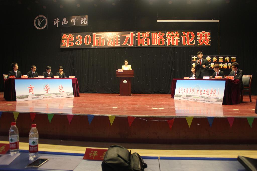 3月31日下午,由党委宣传部主办、文学与传媒学院承办的第30届“雄才韬略”辩论赛半决赛、决赛在大学生活动中心拉开帷幕。经过半个多月的激烈角逐,商学院、城乡规划与园林学院、医学院、电气工程学院(机电工程学院) 过关斩将成功挺进半决赛、决赛。四支代表队分别围绕“曹操麾下人才济济是源于大势所趋还是个人魅力”、“关羽失荆州主要是个人原因所致还是时局因素所致”、“曹操迎帝都许看重的是区位优势还是人才优势”三个辩题展开了论辩。