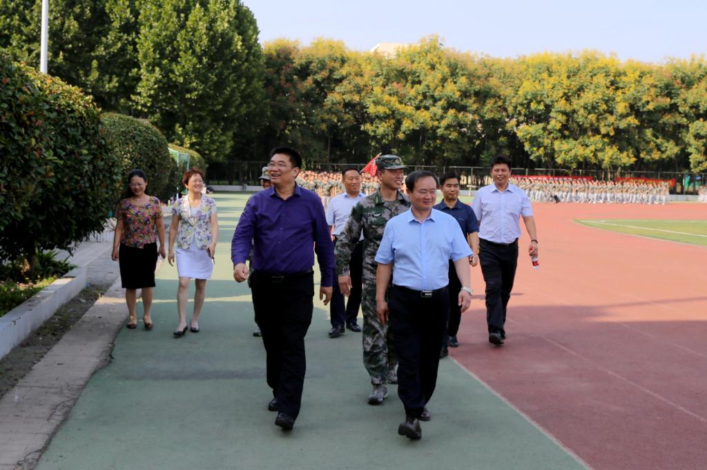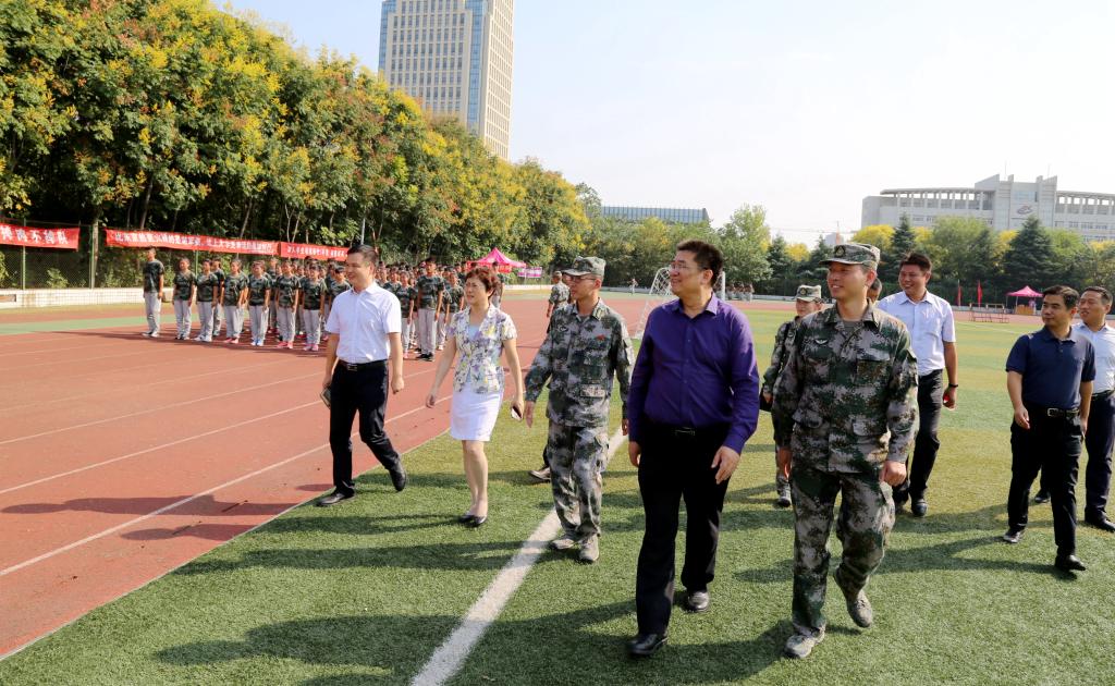 9月18日下午,党委书记闫纪建、院长赵继红、副院长郭涛在承训部队现场负责同志和党政办公室、党委宣传部、学生工作部(处)、保卫处(人武部)等相关部门负责人的陪同下来到新生军训现场,视察bet36体育在线2017级新生军训情况。