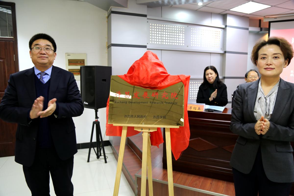 党委书记闫纪建和许昌市副市长赵淑红共同为许昌发展研究院揭牌。