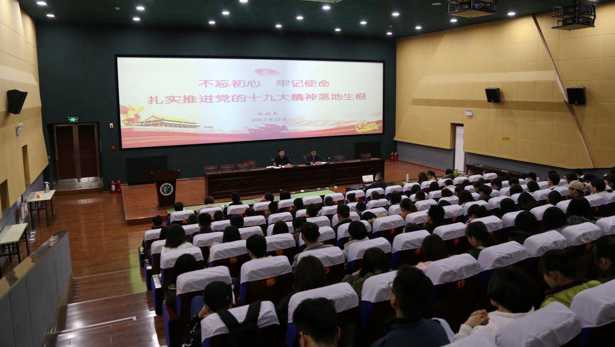 12月27日,许昌市委委员、市委宣传部副部长、十九大精神市委宣讲团第一组组长赵献东来bet36体育在线宣讲党的十九大精神。bet36体育在线相关部门负责人、二级学院团学骨干、校媒学生骨干、学生代表等参加了报告会。报告会由bet36体育在线党委宣传部长冯晓民主持。