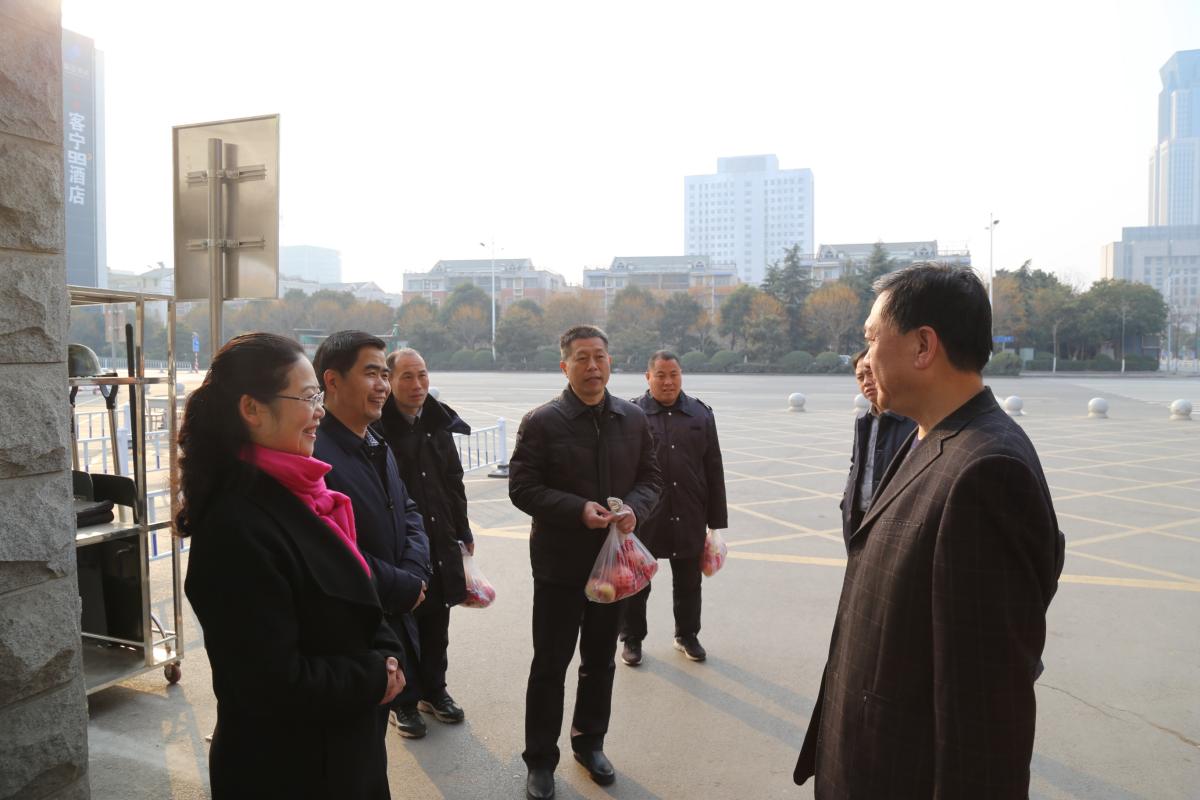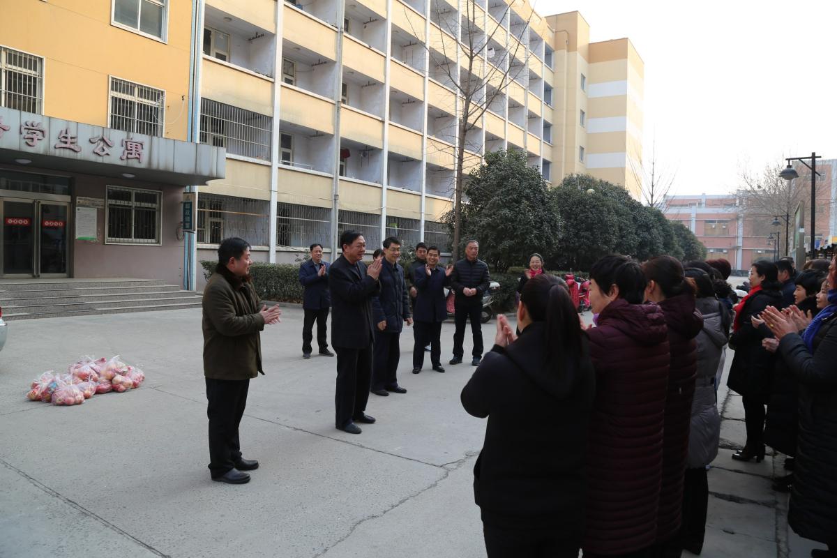 副院长赵正风、郑直代表学校党委行政向大家致以节日的问候和诚挚的慰问。感谢他们为全校师生员工能够度过一个快乐祥和的春节所付出的辛勤劳动。同时嘱咐大家在确保校园安全的同时要保重自己的身体,安排好家庭事务,并送上新春祝福和慰问品。