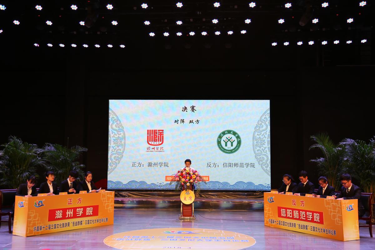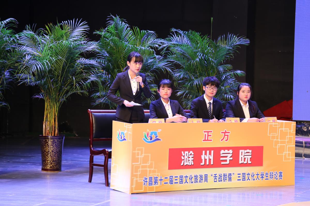 4月29日晚,由许昌市人民政府主办,bet36体育在线、许昌广播电视台承办的许昌第十二届三国文化旅游周“舌战群儒”大学生辩论赛在许昌电视台演播大厅圆满落幕。经过激烈角逐,最终滁州学院代表队获得冠军,信阳师范学院代表队屈居亚军,长江大学及bet36体育在线代表队并列季军。市人大常委会副主任艾祥涛、bet36体育在线党委副书记孙海,许昌广播电视台党委书记、台长李海彬等领导和许昌市民、学院师生等一同观看了此次辩论赛。