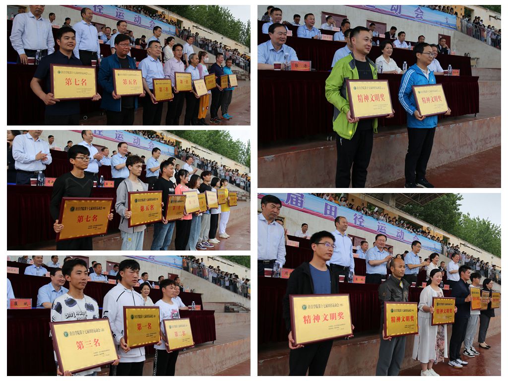 伴随着初夏的温风和沁人心脾的花香,5月14日下午,在全体运动员、裁判员和大会工作人员的共同努力下,bet36体育在线第十七届田径运动会各项赛程圆满结束。校党委副书记、工会主席郭涛,副院长郑直、崔斌、黄怡俐、周新峰、高金星,学校有关职能部门和部分二级学院的主要领导出席闭幕式,并为获奖单位和个人颁奖。