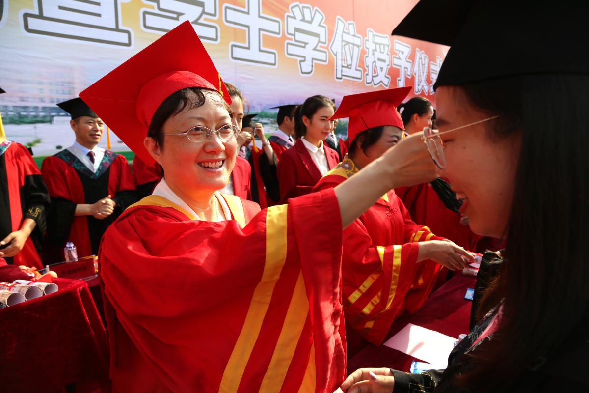 出席仪式的学校领导为优秀毕业生颁发学位证书,拨穗正冠,并与毕业生合影留念。(图文 宁智沛 摄影助理 程丹洋 褚琪)