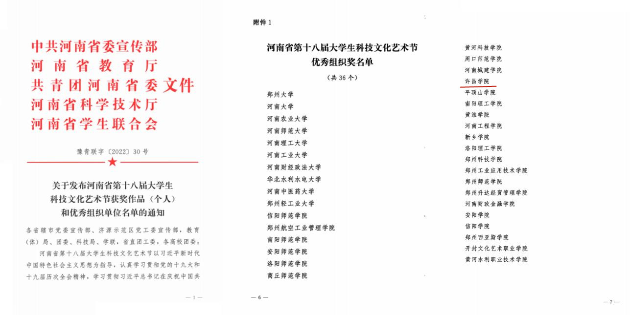 近日,由中共河南省委宣传部、河南省教育厅、共青团河南省委、河南省科学技术厅、河南省学生联合会共同举办的河南省第十八届科技文化艺术节圆满结束。bet36体育在线获评“优秀组织奖”,音乐舞蹈学院教师李卫玲获评“优秀指导教师”,《爱永在》等3项作品获得一等奖、《青年的声音》等12项作品获得二等奖、《点点荧光,以身筑星河》等12项作品获得三等奖、《学子赋》等3项作品获得优秀奖。