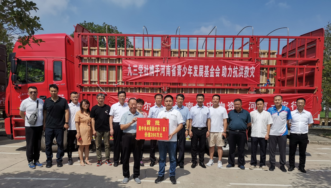 7月23日,九三学社河南分社在得知鄢陵县受灾群众安置点饮水缺失问题严重情况后,立即联系深圳慈善会,协调85台安吉尔高端饮水机(价值260万元)极速捐抵鄢陵县安置点,并于7月25日全部安装到位。在这场极速救援过程中,九三学社许昌支社主委郑直,副主委马丽、刘亭,社员何伟伟、张少华、李莉、李京忠、刘春辉等教师参与了整个交接过程,充分体现了九三学社许昌支社社员对这次突发灾情的关注和支持,为受灾人民尽力贡献自己的一份力量。