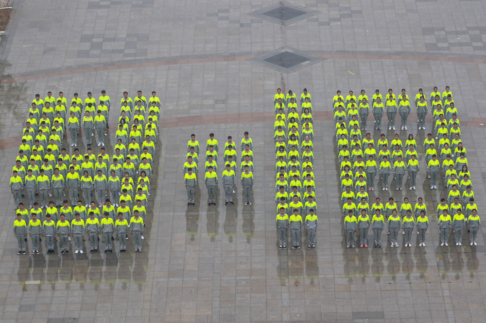 升旗仪式结束后,来自bet36体育在线2018级新生军训团一营的230余名军训学员,在国旗前摆成“9.18”字样,警示人们要警钟长鸣,奋发图强。