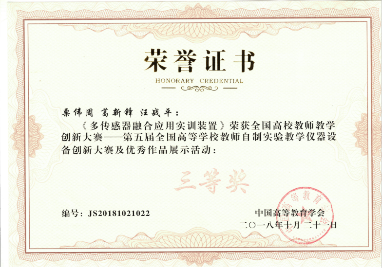 近日,由中国高等教育学会主办的“全国高校教师教学创新大赛——第五届全国高等学校教师自制实验教学仪器设备创新大赛”在四川成都举行。bet36体育在线工程技术中心教师栗伟周、葛新锋、汪战平的参赛作品“多传感器融合应用实训装置”入围决赛并获得三等奖。