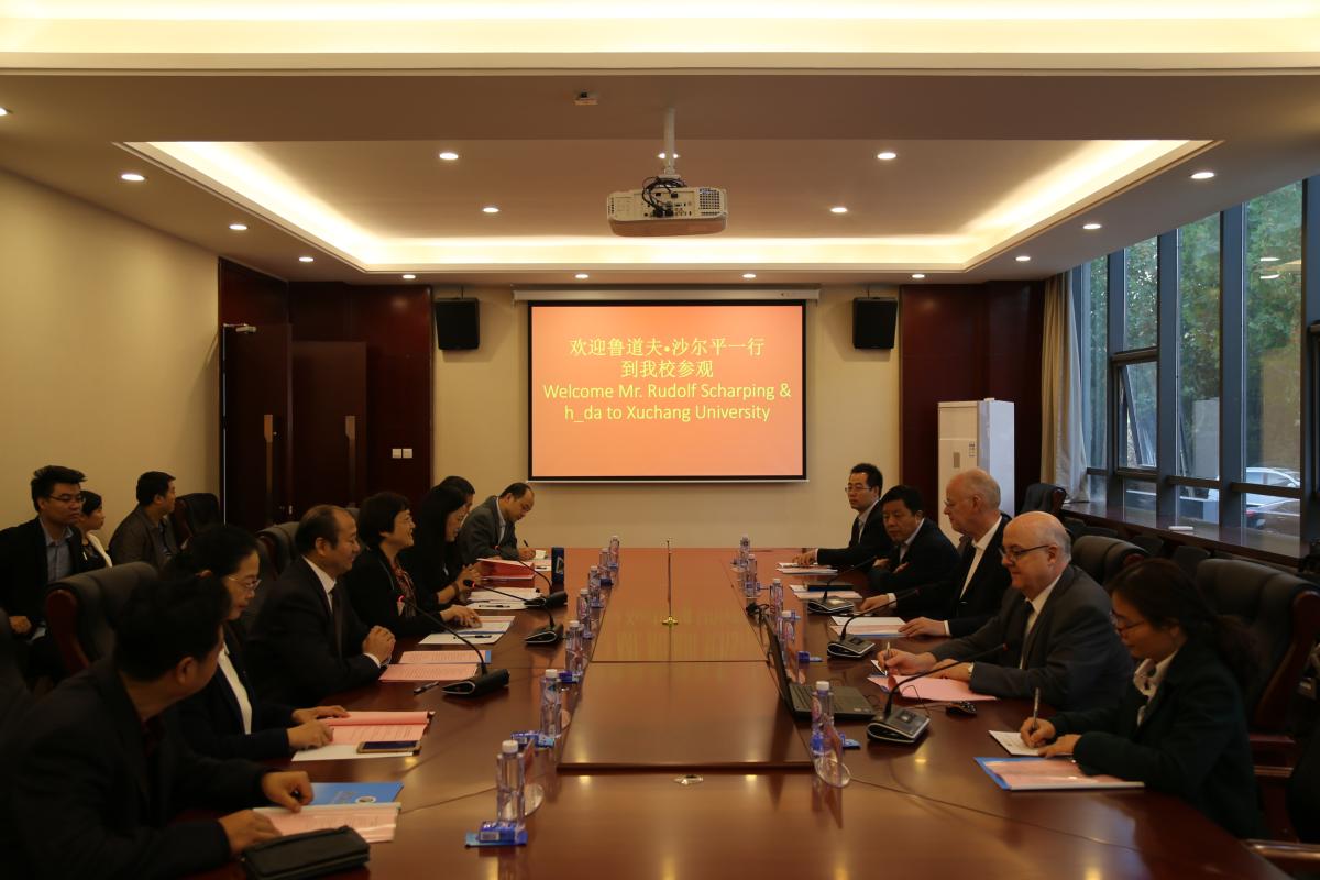 11月3日,德国国防部前部长、社会民主党前主席、鲁道夫沙尔平战略咨询交流有限公司董事长鲁道夫·沙尔平,带领德国达姆施塔特应用技术大学校长斯滕格勒一行来bet36体育在线考察访问。党委书记闫纪建、院长赵继红会见了德国客人,双方进行了会谈交流。许昌市政协副主席、商务局长张巍巍等陪同访问,副院长崔斌参加会谈,党政办公室、国际交流与合作处、国际教育学院有关负责人参加会谈。