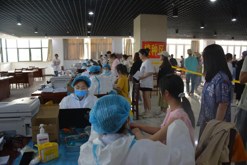 5月7日上午,全体在校校领导一同来到接种现场接种疫苗。前来接种的学生在志愿者引导下有序排队,经体温测量、健康咨询、知情同意书填写、信息录入、疫苗接种、留观半小时等流程依次完成接种。按照接种要求,现场设置有咨询告知区、预检登记区、接种区和留观区等区域,各个环节指示清晰明确,保证接种全过程单向流动。现场各部门人员协同配合,整个接种程序严谨,操作规范,秩序井然。