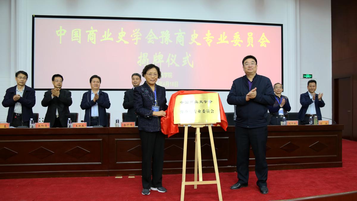 仪式上,党委书记闫纪建和中国商业史学会会长王茹芹共同为豫商史专业委员会揭牌。