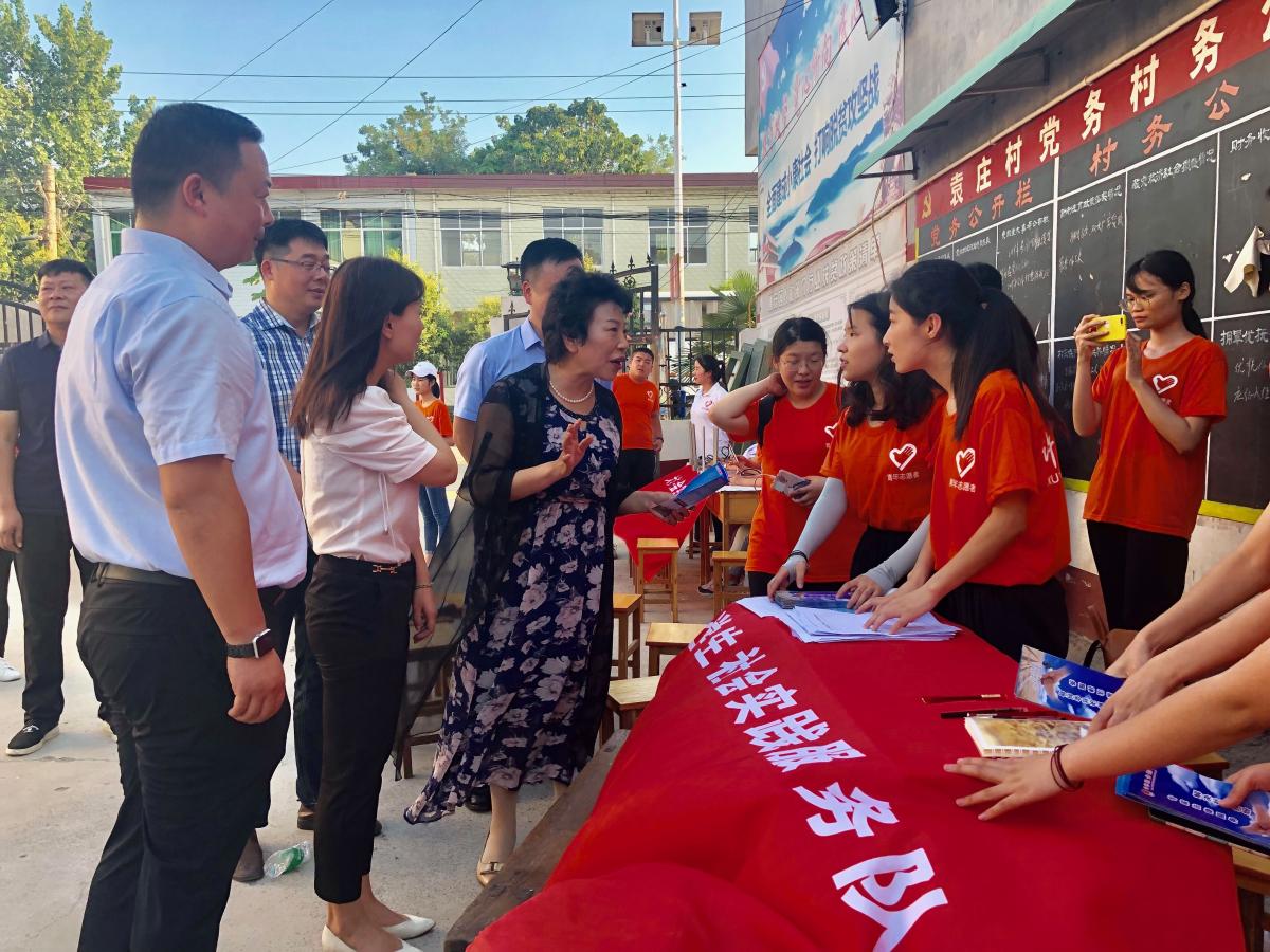 7月4日至5日,校纪委书记罗凤英、工会主席高金星分别前往艾庄乡袁庄村、南阳市内乡县马山口镇等地慰问了十支暑期社会实践团队,为队员们送去了慰问品和温暖。党委宣传部、党委学工部、校地合作办公室、工会、团委等相关职能部门负责人陪同。