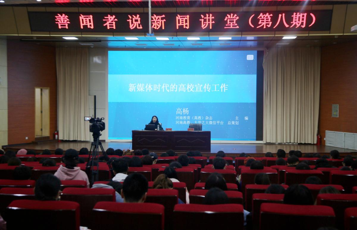 1213日下午,由bet36体育在线党委宣传部(新闻中心)主办的第8期“善闻者说”新闻讲堂在图书馆二楼学术报告厅举办。河南教育(高教)、河南教育(幼教)杂志主编高杨以“新媒体时代的高校宣传工作”为题,为bet36体育在线各二级学院党总支副书记、各单位新闻信息员、校媒师生作新闻专题讲座。本次讲座由党委宣传部部长、新闻中心主任冯晓民主持。