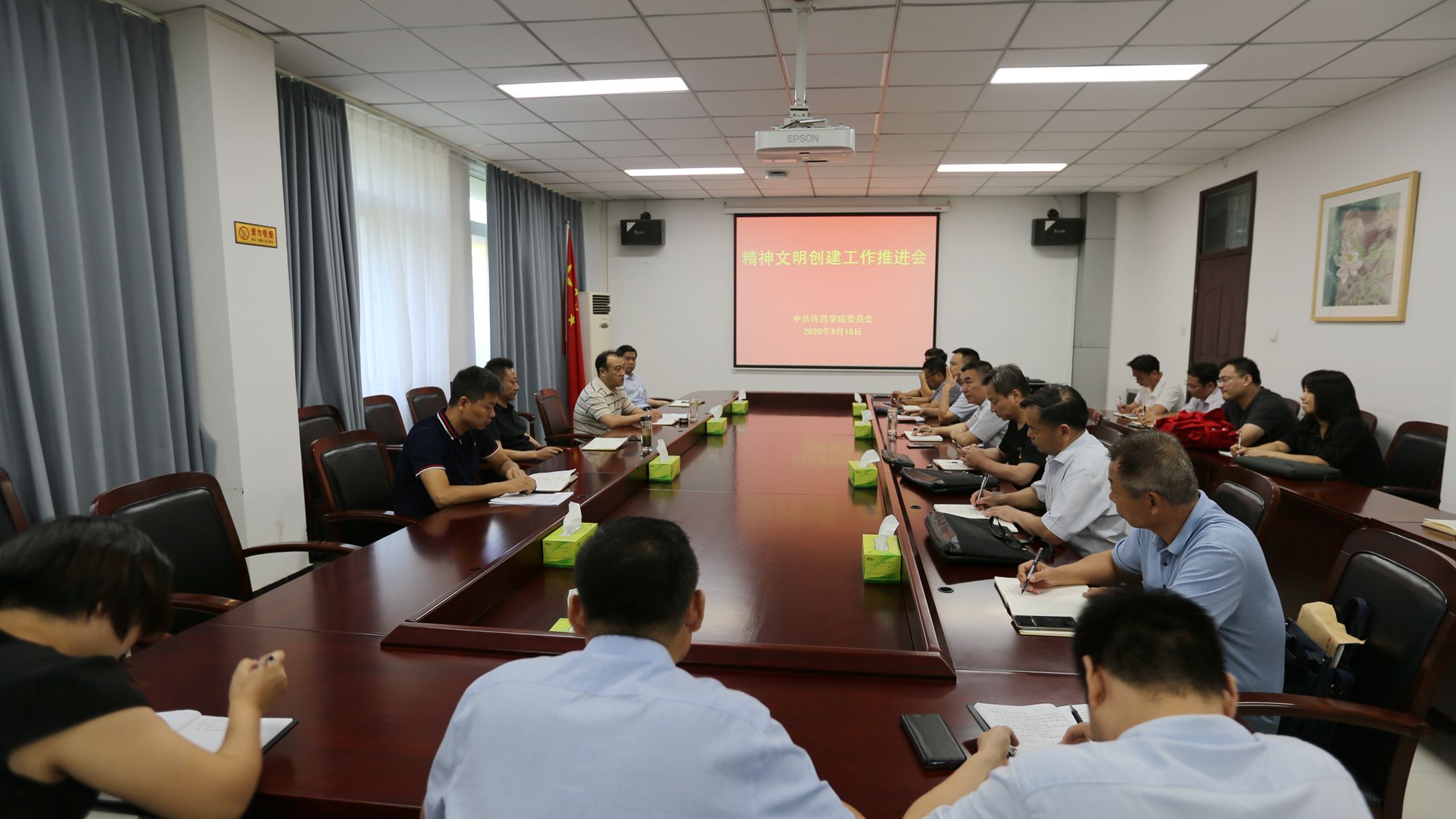 会上,党委副书记孙海强调了精神文明创建的重要性并就目前许昌市创建全国文明城市工作提出具体要求:一是全校各单位和全体师生要切实增强责任感和紧迫感,把创建全国文明城市作为当前头等大事,抓紧抓实抓好;二是对暴露出来的问题做到立整立改,坚决制止校内不文明行为,坚决杜绝校内不文明现象,以“不失分、拿满分”的高标准做好迎检工作。三是要承担主体责任,坚持底线思维,各个部门要做到“守土有责、守土担责、守土尽责” 。