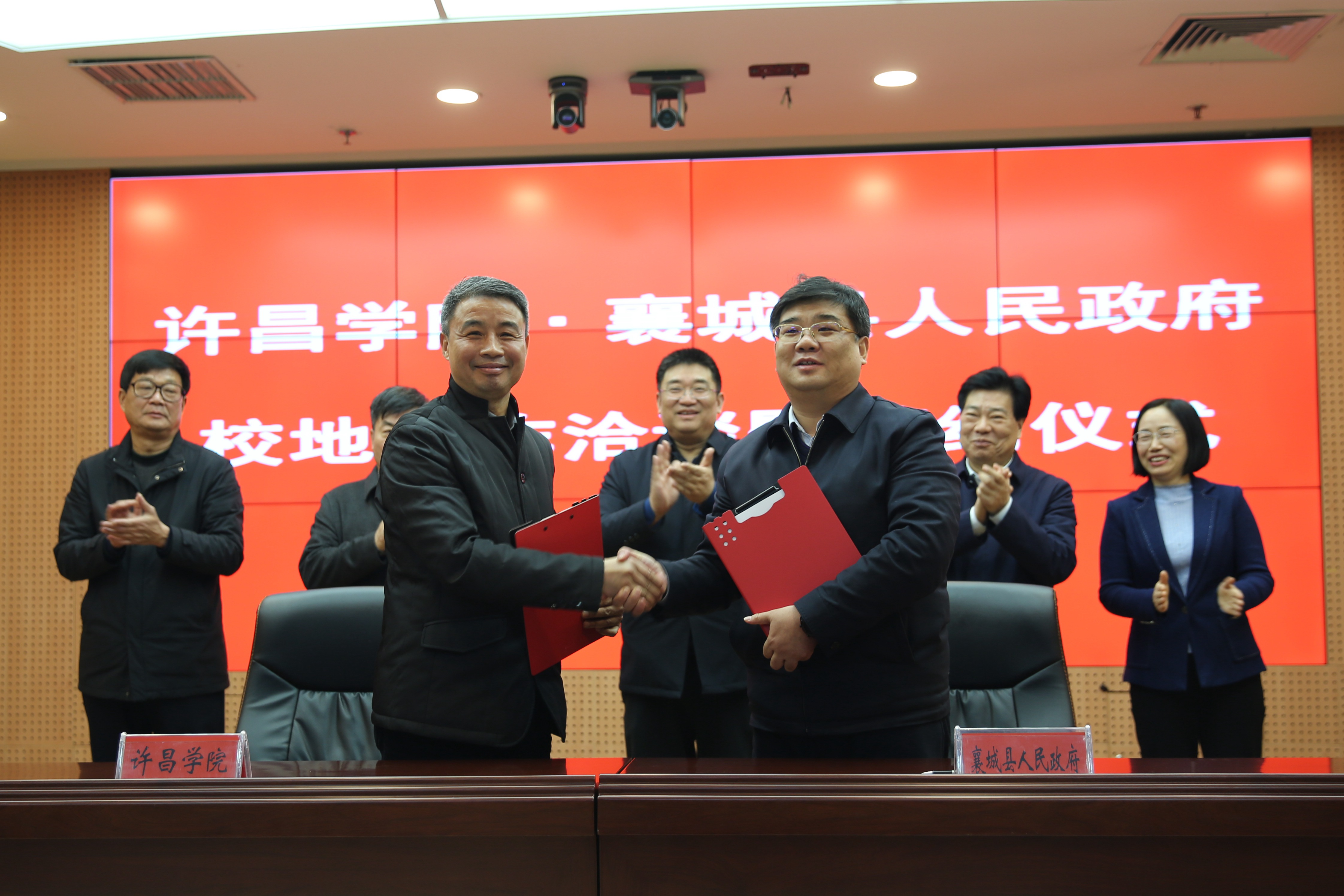 院长岳修峰、襄城县县长孙毅共同签订校地合作框架协议