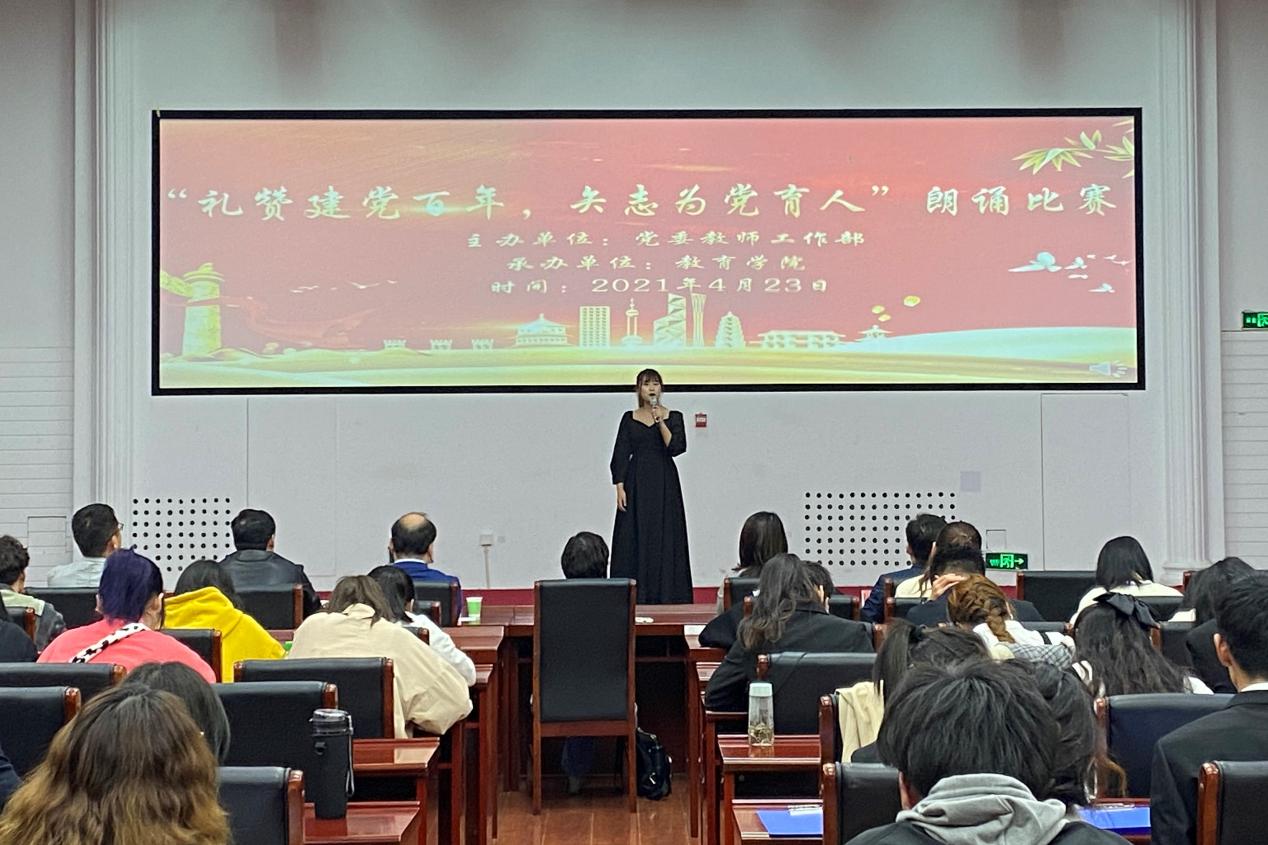 4月23日下午,由党委教师工作部主办、教育学院承办的“礼赞建党百年,矢志为党育人”诗歌朗诵比赛在创新创业中心一楼学术会议大厅举行。来自bet36体育在线9个院系的12支师范类专业在校生队伍参加比赛。
