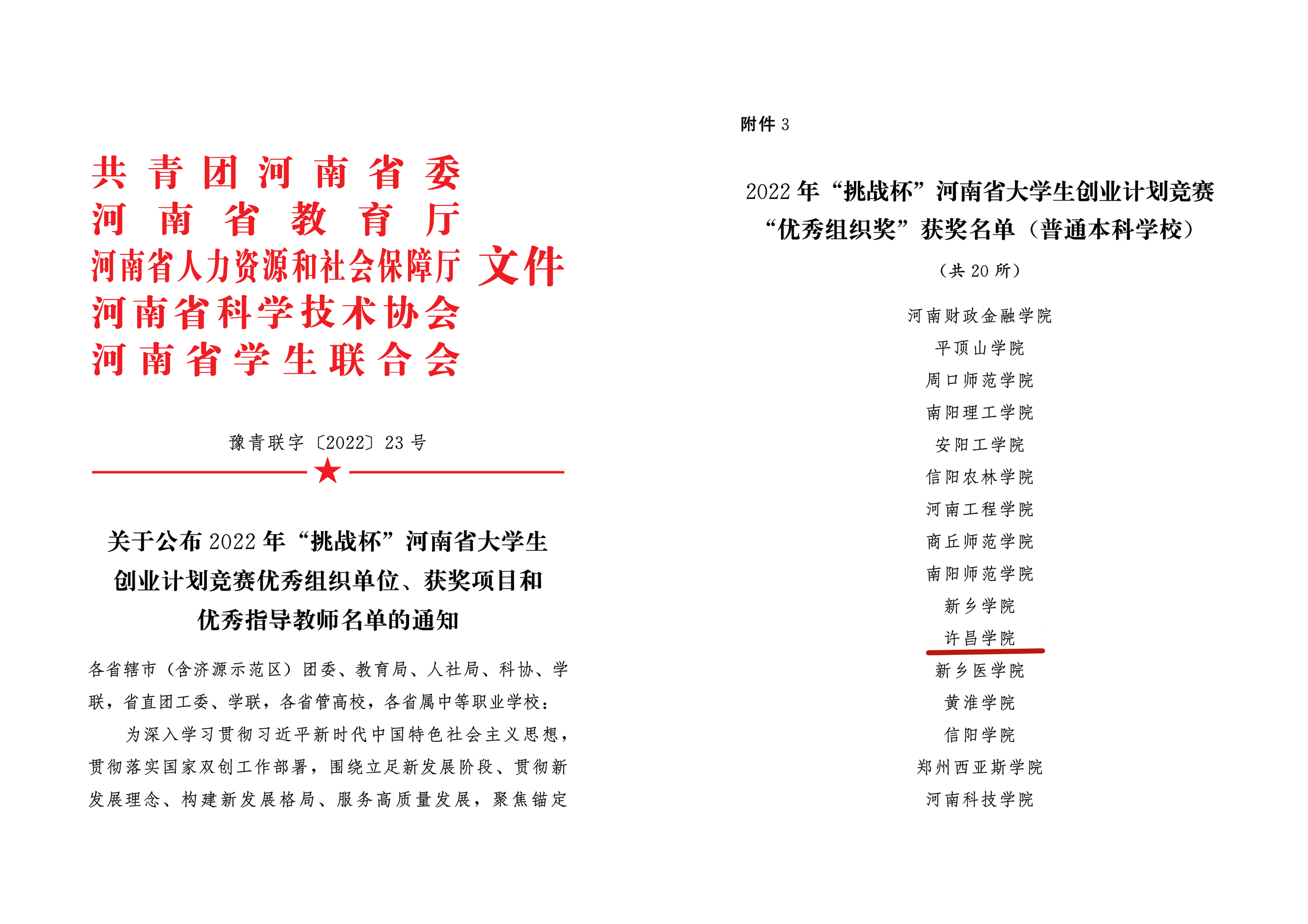 近日,2022年“挑战杯”河南省大学生创业计划竞赛获奖名单公布,bet36体育在线共23项作品获奖,并荣获赛事优秀组织奖。