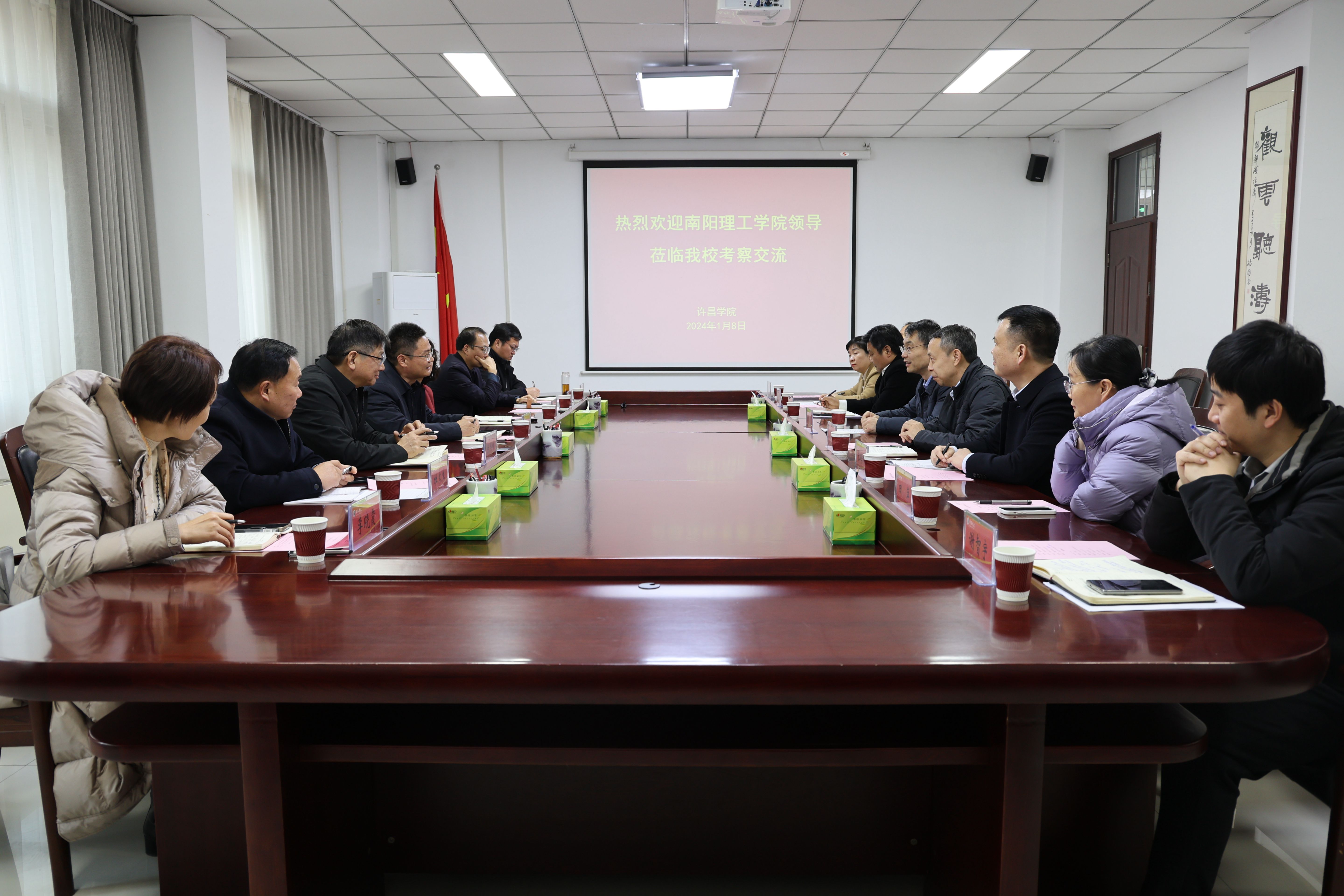 1月8日下午,南阳理工学院校长郝好山、副校长张爱红等一行7人到bet36体育在线考察交流。bet36体育在线在办公楼第一会议室举行座谈会,校长郑直、副校长杜根远出席座谈会。座谈会由杜根远主持。