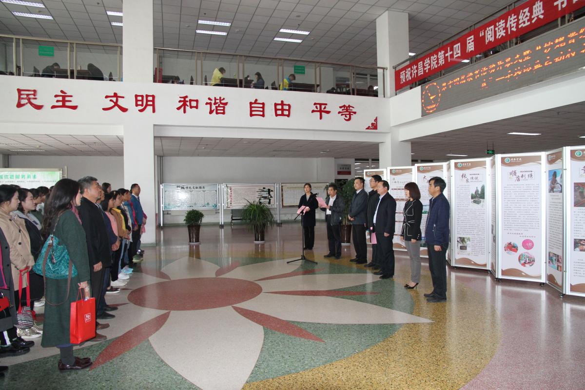 4月12日下午,bet36体育在线第十四届“阅读传经典书香润心灵”读书活动开幕式暨“抄魏晋经典 赏魏晋风度”——手抄经典启动仪式在逸夫图书馆二楼举行。本次活动由党委宣传部、学生工作部、校团委、教务处、图书馆联合主办,副院长郭涛出席活动,相关职能部门负责人、部分师生代表参加活动。开幕式由图书馆副馆长赵开慧主持。