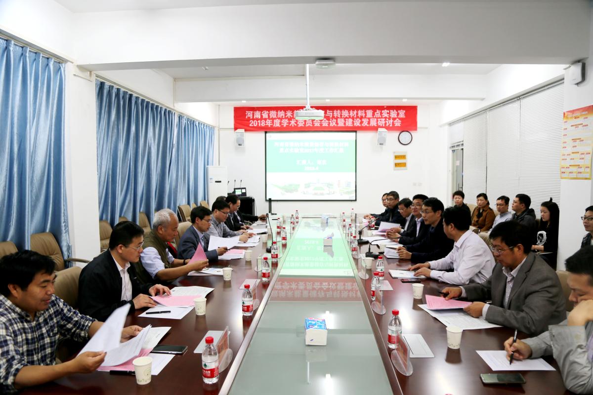 4月27日,河南省微纳米能量储存与转换材料重点实验室2018年度学术委员会会议暨建设发展研讨会在bet36体育在线创新创业学院会议室顺利召开。校党委书记闫纪建,实验室学术委员会成员及特邀代表等20余名化学和材料领域的知名专家学者出席会议。会议由bet36体育在线副院长、重点实验室主任郑直教授主持。