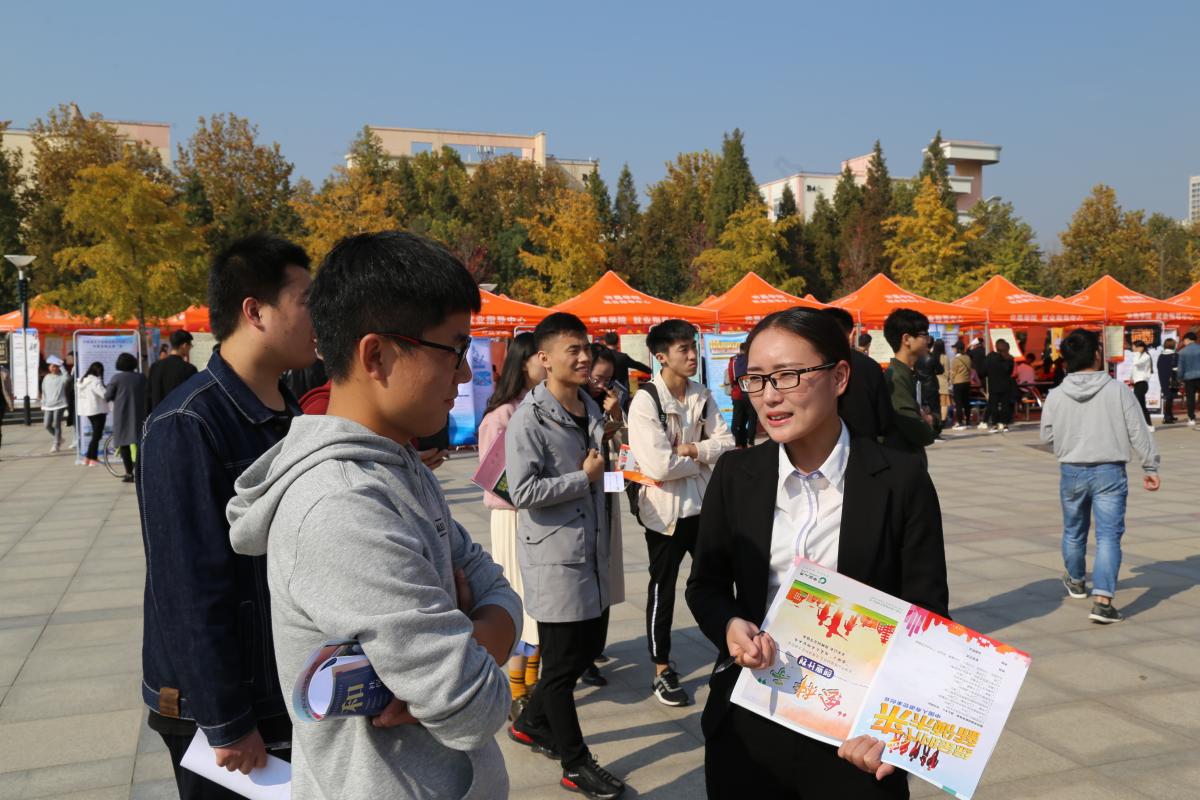 11月3日,由许昌市人力资源和社会保障局和bet36体育在线联合举办的许昌市2019届高校毕业生秋季供需洽谈会在bet36体育在线弘毅广场前举行。本次洽谈会共吸引中国南方航空公司、中国人寿保险公司、中铁隧道股份有限公司、河南森源集团有限公司、河南瑞贝卡发制品股份有限公司、河南黄河旋风股份有限公司等全国共360家企业到bet36体育在线进行人才招聘,岗位需求涵盖本科及高职高专学历层次的各个专业,共提供7560个就业岗位,校内外5000余名毕业生进场求职。