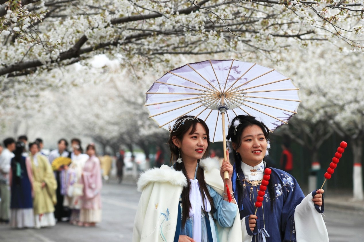 3月12日,bet36体育在线第四届“樱花文化节”开幕。本届“樱花文化节”通过该校官方网站、官方微信公众号、抖音等平台开展线上“云赏樱”活动,全方位展示樱花盛开的美景。图为身着汉服的学生。 本报记者 牛书培 摄